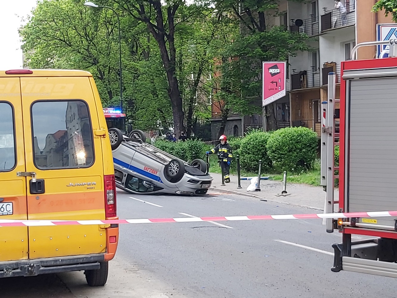 Na ul. Piłsudskiego dachował ambulans przewożący krew [AKTUALIZACJA]