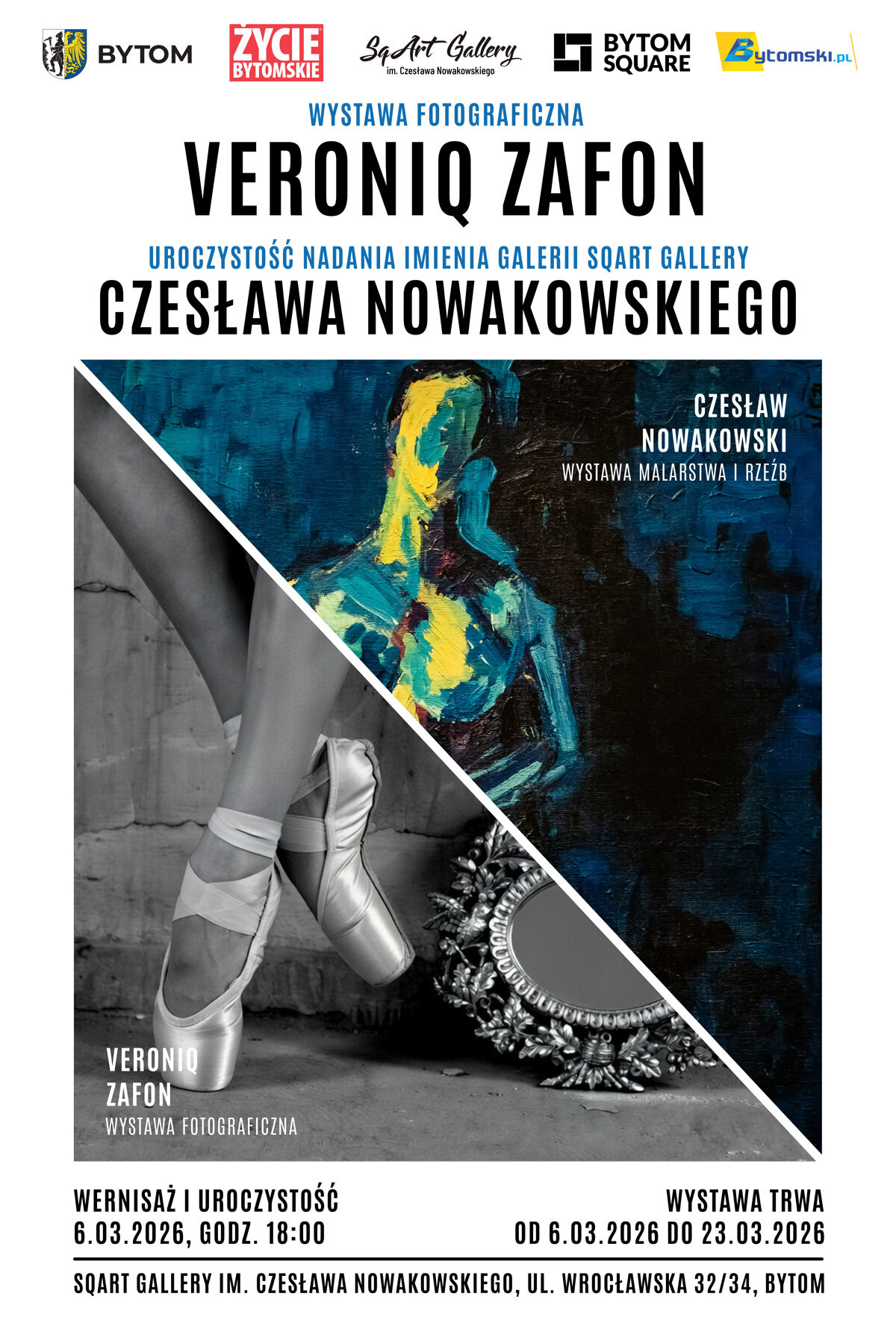 Równolegle prezentowane są dwie wystawy: „Pointe & Mirror” Veroniq Zafon oraz ekspozycja twórczości Czesława Nowakowskiego, dostępne dla publiczności w SqArt Gallery w Bytomiu przy ul. Wrocławskiej 32 w dniach 6–23 marca 2026 roku.