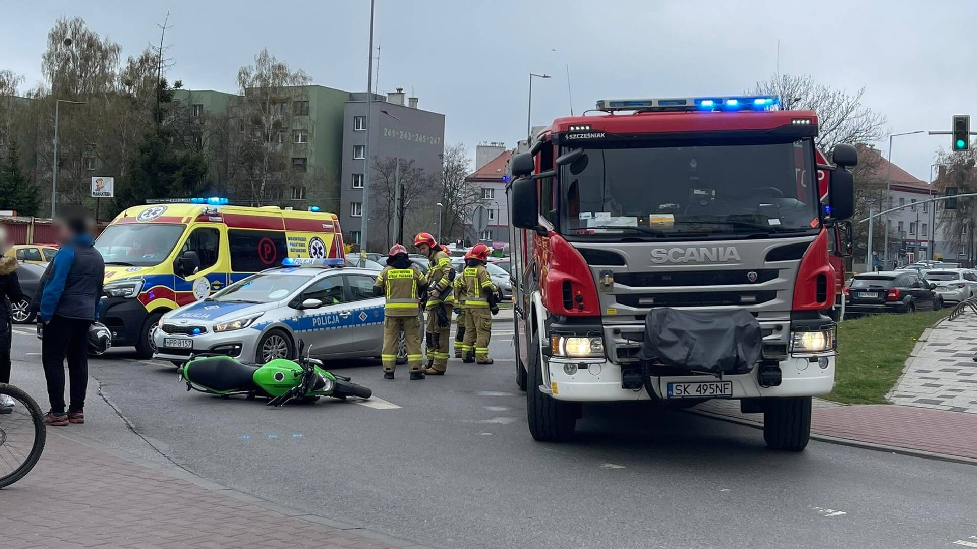 Trwają prace służb na ul. Strzelców Bytomskich w Bytomiu. Kierowca uderzył w motocyklistę