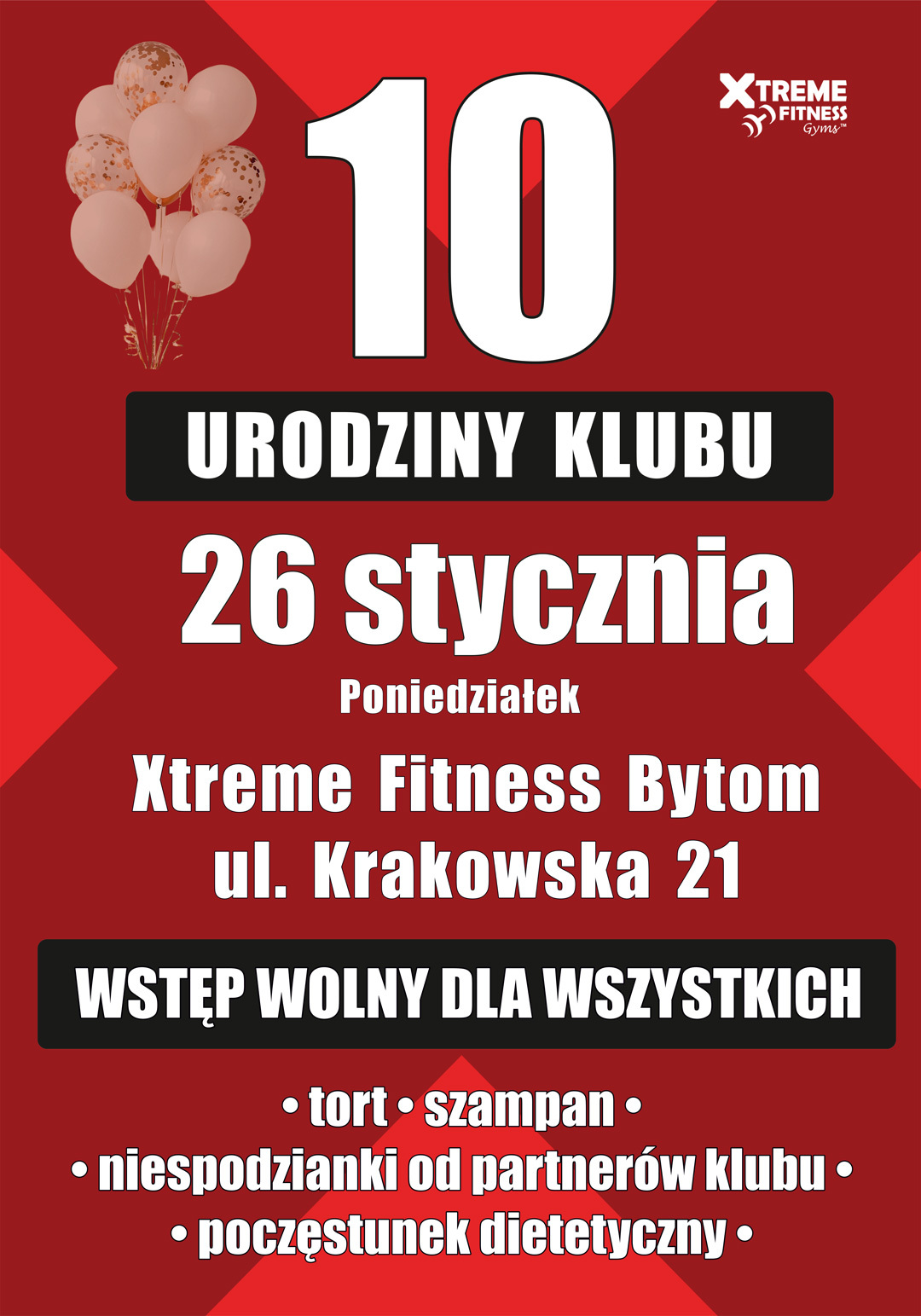 Urodzinowe obchody odbędą się w poniedziałek, 26 stycznia, w siedzibie Xtreme Fitness Bytom Krakowska. Wstęp wolny.