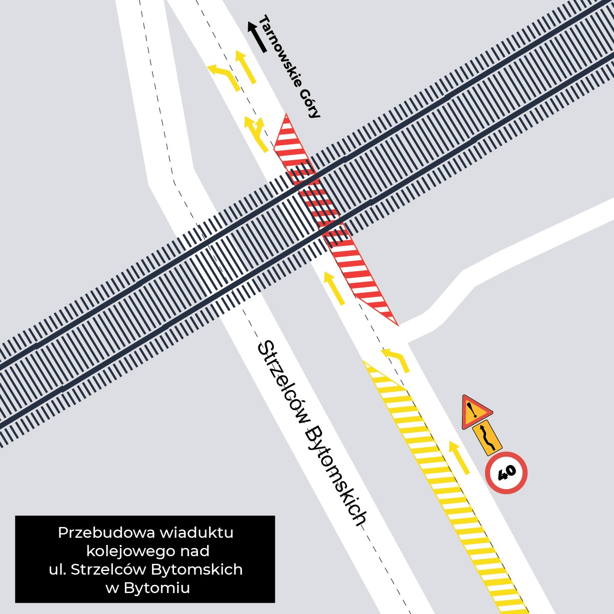 Zwężenie na ul. Strzelców Bytomskich. Rozpoczyna się przebudowa wiaduktu kolejowego